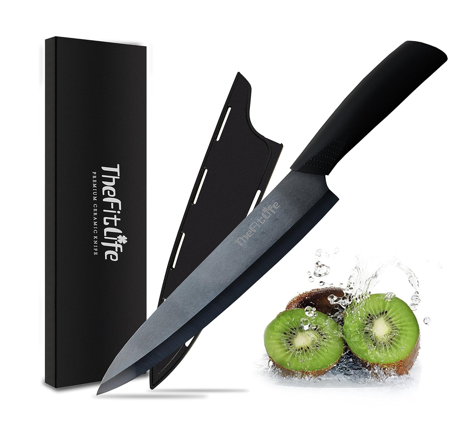 From a casual cooker to a professional chef, this TheFitLife 8 inch ceramic knife is amazing to use in the kitchen. I was surprised at how lightweight it is and found it is made of Zirconia so it it easy to clean, will never rust, is BPA free and hygienic. I have used it several times in the kitchen now and it slices through items with ease. From the whole chicken I cut up to the tomatoes for the salad, it worked like a charm. It comes in a very nice gift box and has a cover to keep the blade safe during storage. It even comes with a lifetime guarantee. Very few companies stand behind their products like this anymore so take full advantage!